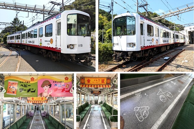 ベビースターオリジナルの車体ラッピングと車内装飾をした特別車両が、2023年8月1日~8月末日まで江ノ島電鉄にて運行します。