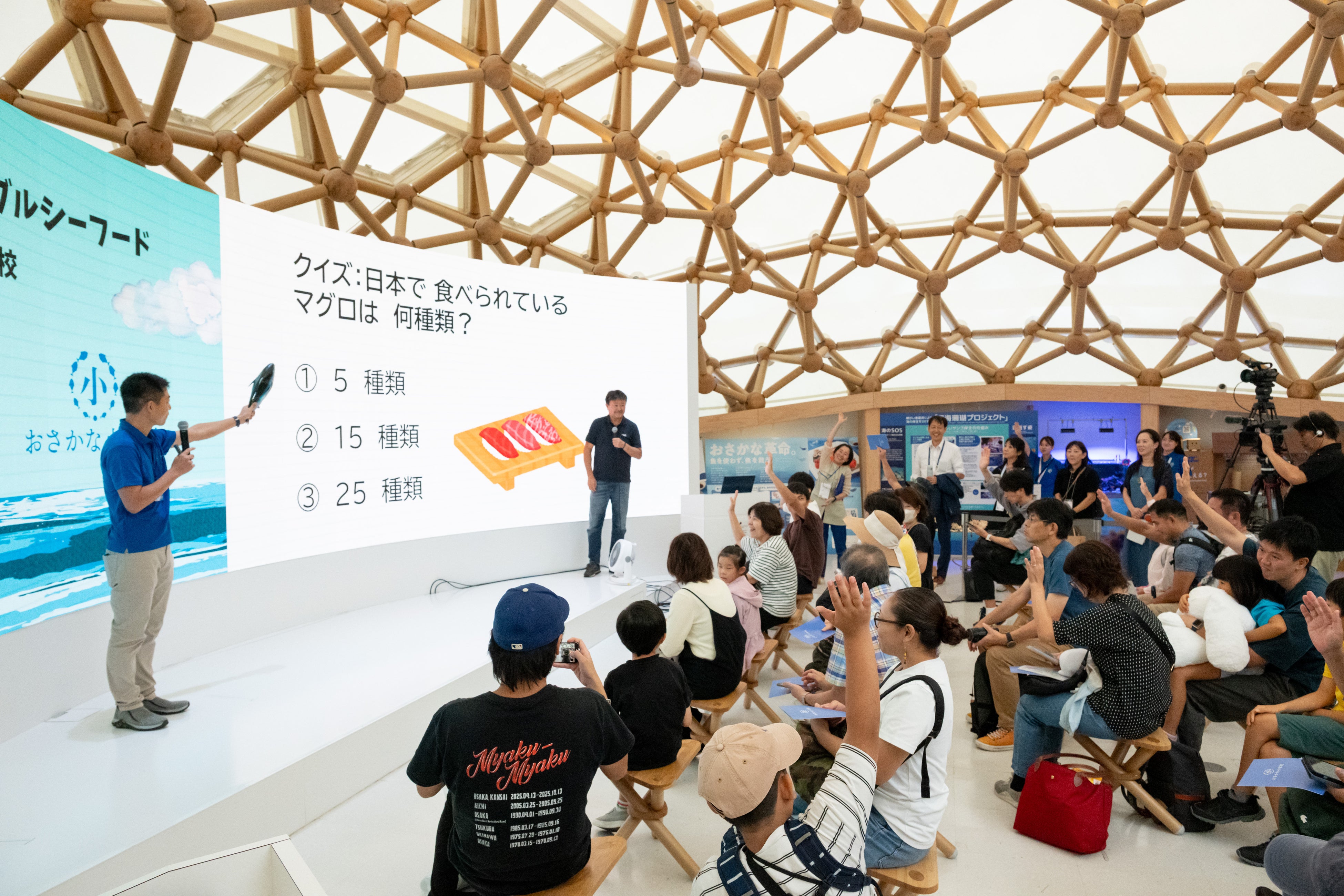 株式会社シーフードレガシー(代表取締役社長:花岡和佳男、所在地:東京都港区、以下シーフードレガシー)は、大阪・関西万博の「BLUE OCEAN DOME」(認定NPO法人ゼリ・ジャパン出展)にて、サステナブルシーフードについて考える1週間のプログラム「選んで守るサカナの未来 Week」を9月29日から10月5日まで開催しました。期間中は、持続可能な水産業の実現を目指す国内外の活動団体や漁業者、認証制度の運営団体、水産行政担当者らが登壇し、サステナブルシーフードを取り巻く課題や成功事例、必要なアクションについて議論を深め、万博に来場した一般消費者の理解促進に向けた参加型プログラムも実施しました。