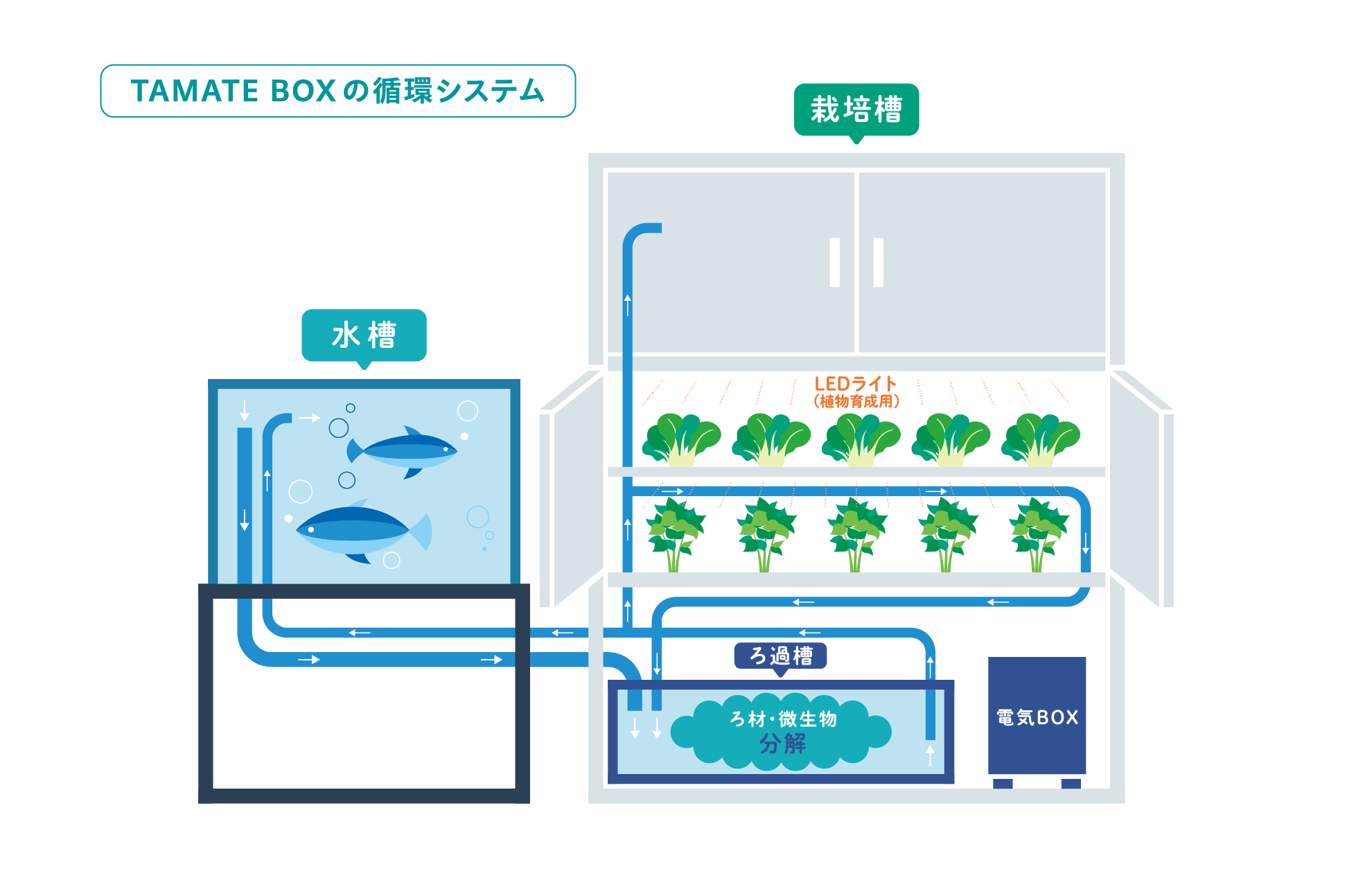 アクアポニックス装置「TAMATE BOX」の循環システム