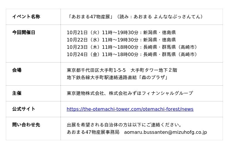 ・ 47都道府県の名産品を集めた「あおまる47物産展」を大手町タワーで2025年1月より定期開催