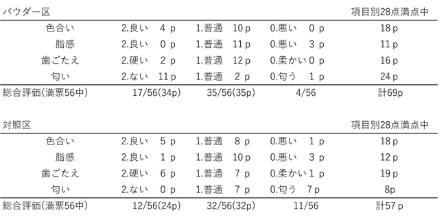 ■開封直後のパウダー区と対照区に対する官能検査結果