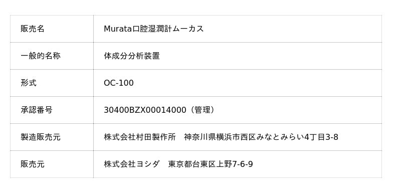 株式会社ヨシダは、「Murata口腔湿潤計ムーカス(R)」を通じて、歯科医療におけるドライマウス診断の一助となることを目指し、患者様の口腔の健康維持、ひいては全身の健康増進に貢献してまいります。