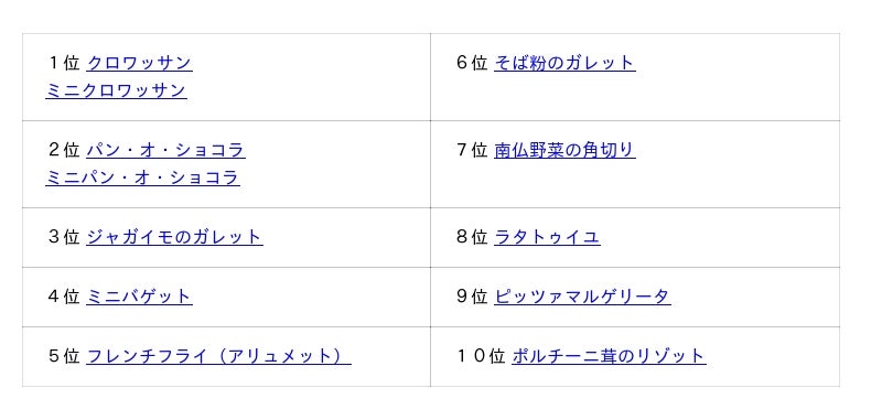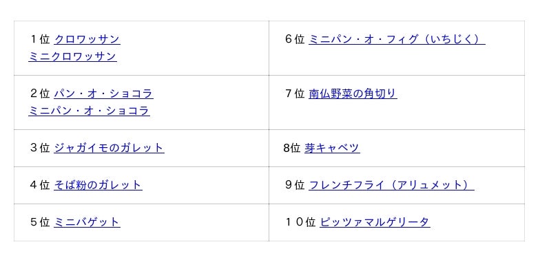 お客さま・スタッフの両部門で、今年も「クロワッサン」が堂々の1位に選ばれました。オーブンで焼き上げている時から立ちのぼるバターの香りと、外はサクッと中はしっとりとした食感が愛され、ピカールを代表する定番商品として不動の人気を誇ります。続く人気商品には「パン・オ・ショコラ」「ジャガイモのガレット」「ミニバゲット」「フレンチフライ(アリュメット)」など、食卓を豊かにするパンとジャガイモのメニューが並びました。上位に選ばれた人気商品の「クロワッサン」「パン・オ・ショコラ」は、10月24日(金)~26日(日)に開催される「パンマルシェ」の対象商品として特別価格で販売いたします。また、3位の「ジャガイモのガレット」は、現在開催中の「ポテトフェスティバル」(開催期間:9月22日(月)~10月26日(日))にておトクにお求めいただけます。この秋は、ピカールの人気商品を通して“フランスの味”をお楽しみください。