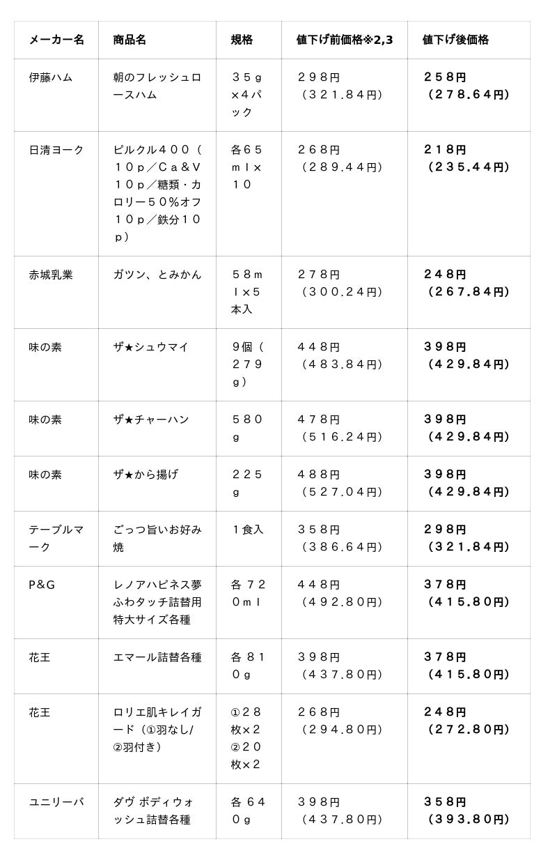 <その他の値下げ商品 一例>(値下げ前売価は店舗によって異なります。( )内は税込価格※4です。)