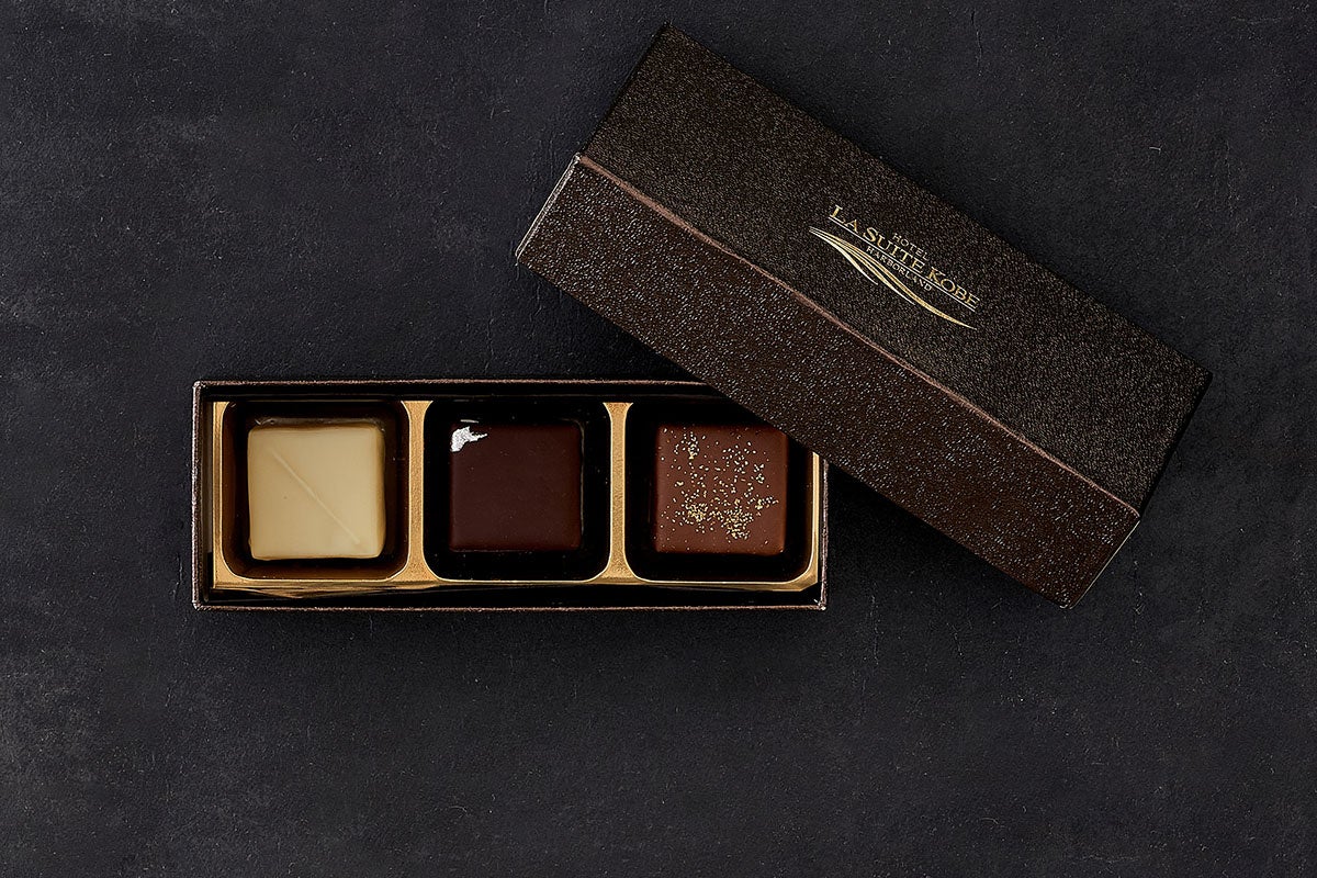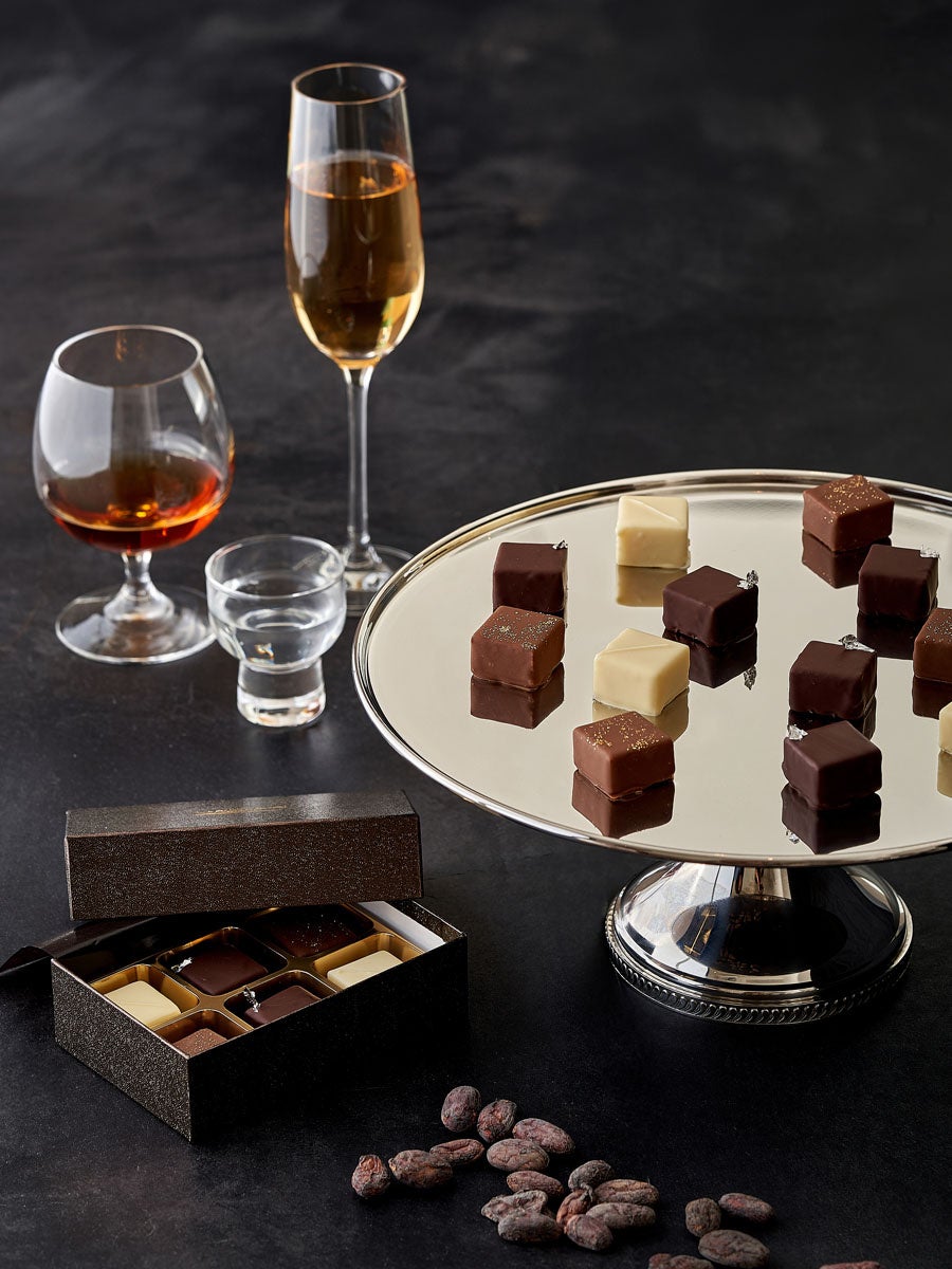 大人のためのチョコレートとして開発された同商品。フランス産高級チョコレートを使用し、世界中の愛好家から愛される極上のコニャック「レミーマルタン XO」、世界で最もその名を知られるシャンパーニュ「ドン ペリニヨン」、ノーベル賞の公式行事で振る舞われ、絶賛を博したことでも有名な「福寿 純米吟醸」を合わせたオリジナルのボンボンショコラです。6個入と3個入の2種をご用意しています。