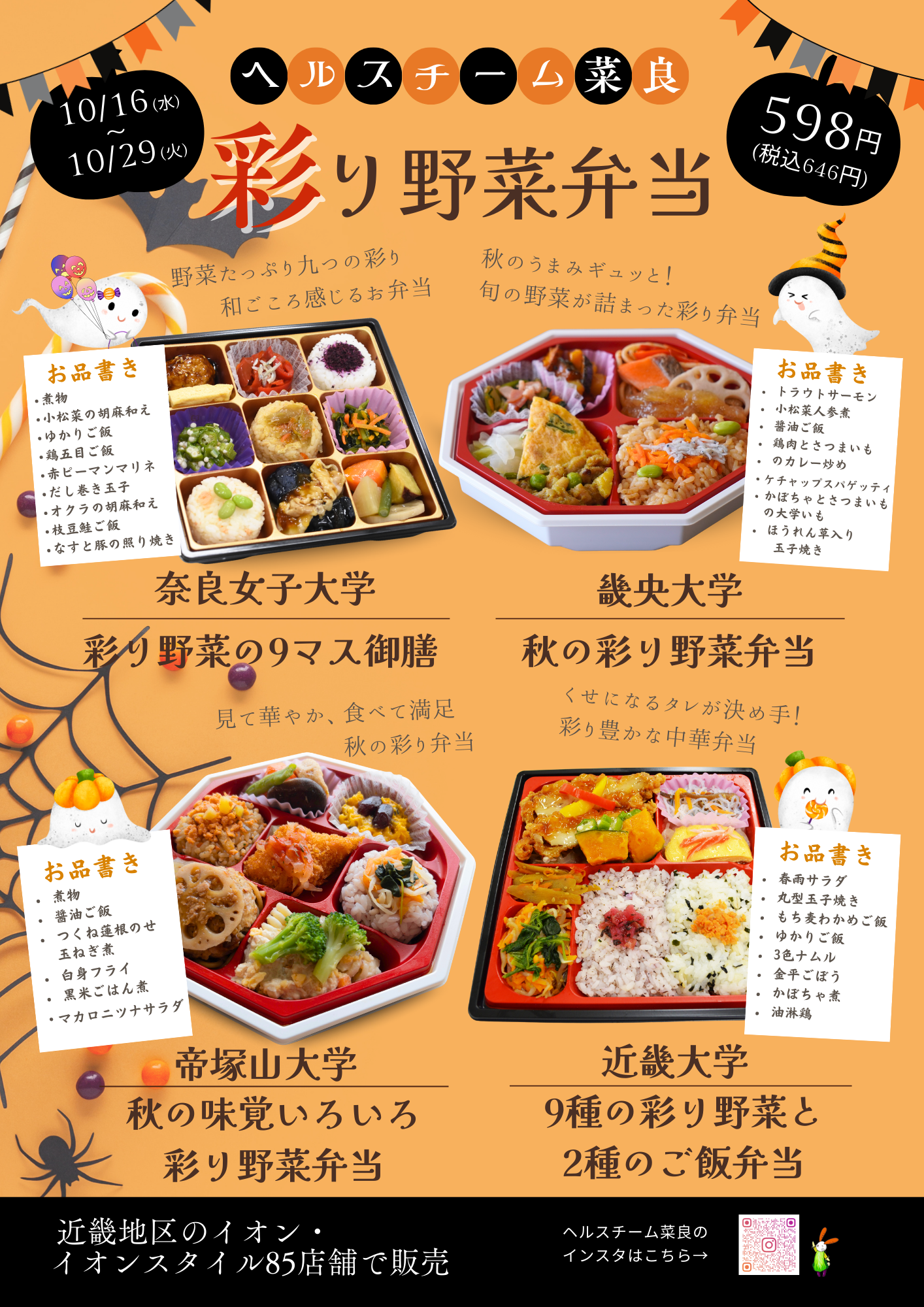 ○彩り野菜の9マス御膳(奈良女子大学)○秋の彩り野菜弁当(畿央大学)