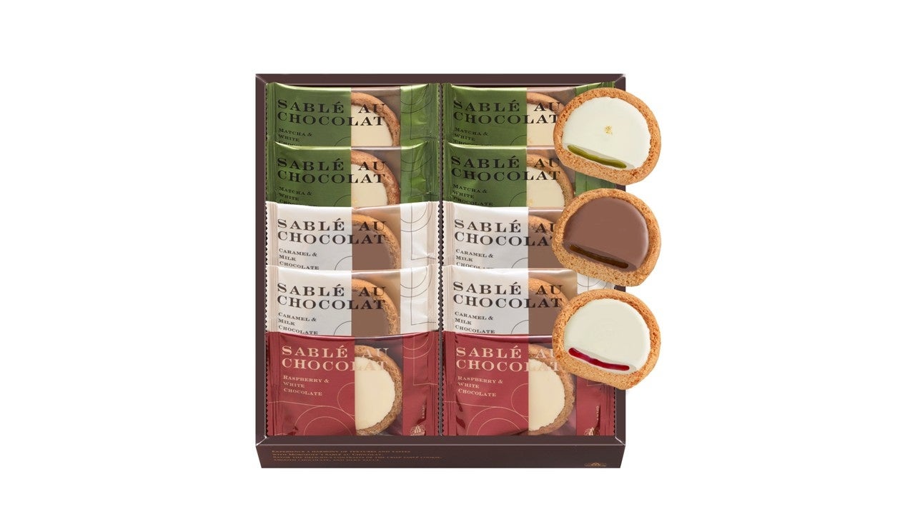 サクサク食感の厚焼きサブレにとろけるソース入りのチョコレートをあわせた同商品は、新しい味わい「抹茶&ホワイトチョコレート」も仲間入りし、贈り物や自分へのご褒美など幅広くお楽しみいただけます。