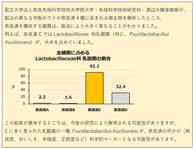 「今回の研究データによって、弊店の奈良漬は他社様の奈良漬と比較して、乳酸菌の量が圧倒的に多い事が判明しました。