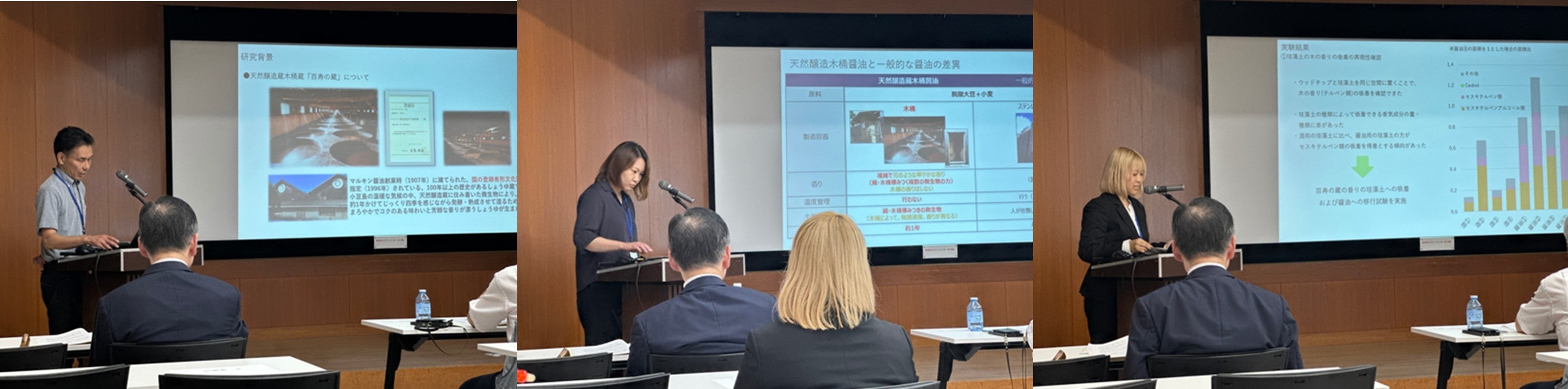 株式会社JFLAホールディングス(本社:東京都中央区/代表取締役社長:檜垣周作)の子会社である盛田株式会社(本社:愛知県名古屋市/代表取締役社長:檜垣周作)は、2025年10月16日、愛知県豊橋商工会議所で開催された「第93回醤油研究発表会」において当社社員が登壇し、天然醸造蔵木桶仕込み醤油の芳醇で複雑な香りで特徴づける主要成分の同定、その生成に関わる蔵付き微生物の存在、ならびに木桶蔵由来の香気寄与の特長を明らかにした研究成果を講演しました。
