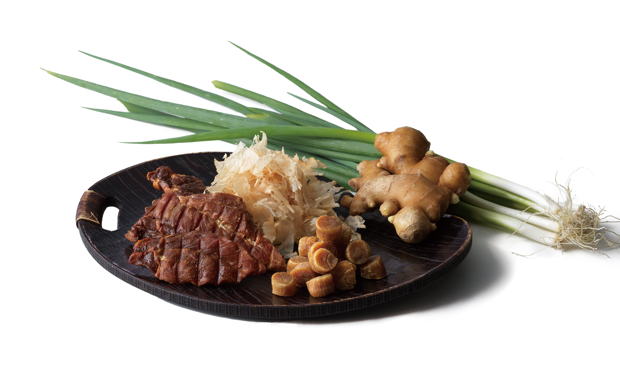 今回のリニューアルでは、鶏肉を燻してつくった鶏節を鰹節のように丁寧に削って使用しました。手間がかかる方法ですが、燻すことで鶏のうまみが凝縮され、味の深みが生まれます。この燻し鶏の豊かな味わいに、帆立、ねぎ、生姜の香味を新たに加えることで、より中華らしいだしに仕上げました。