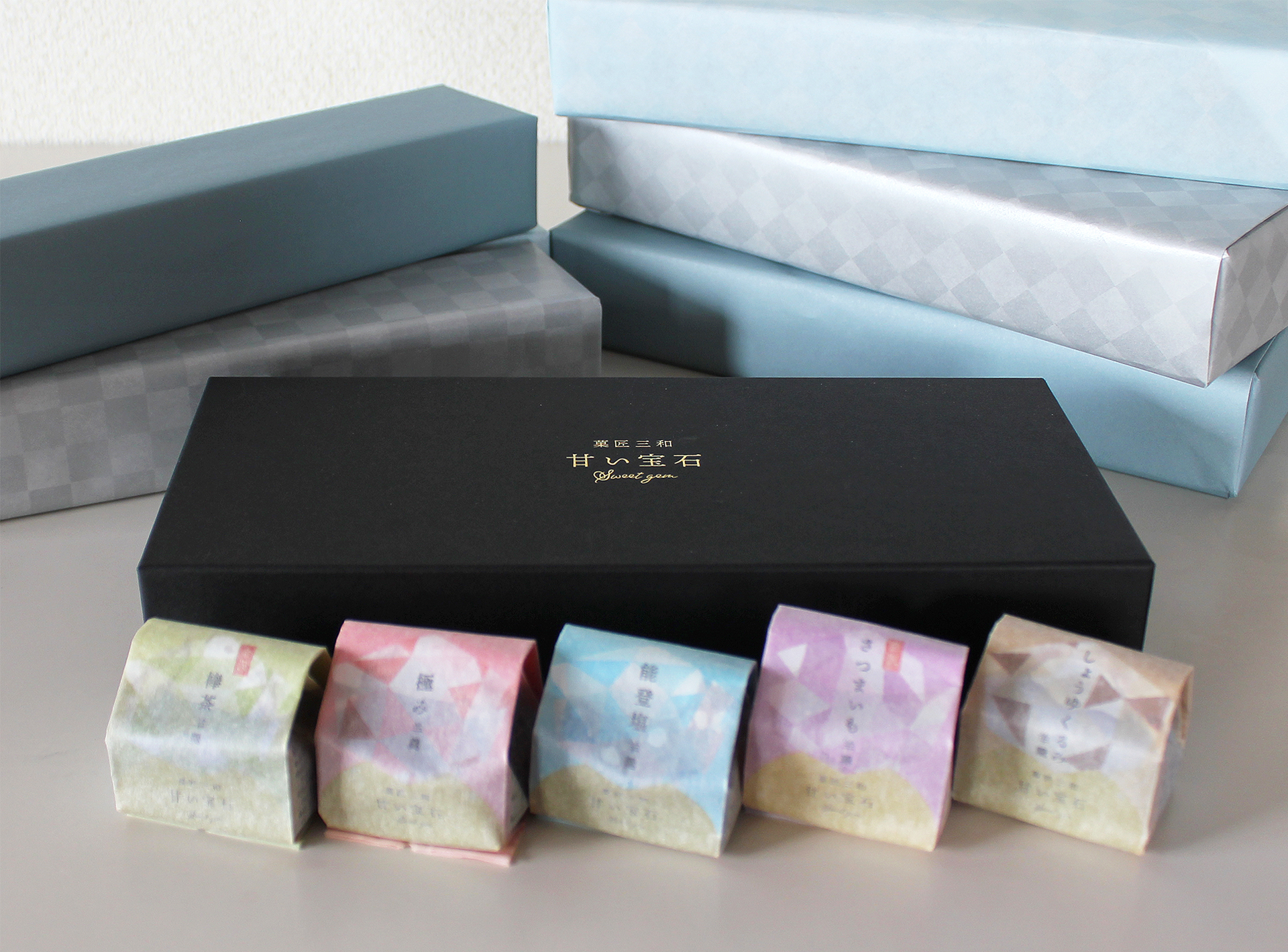 『甘い宝石』は、菓匠三和公式オンラインショップをはじめ、「COREZO」「じのもんギフトバコ」などのECサイトにて販売開始。サイトによっては、熨斗・包装も可能。季節のご挨拶やお祝い、お中元、お歳暮など幅広い用途にご利用いただけます。