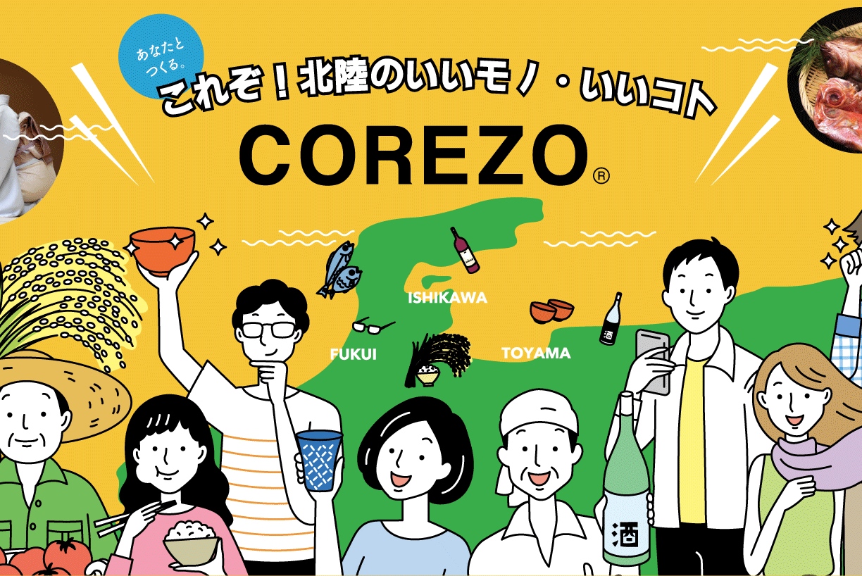 COREZO「みんなでつくる、北陸のモノ・コト発掘サイト」がコンセプトの参加・共創型のECサイトです。掲載商品数は約3,500点。