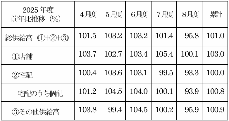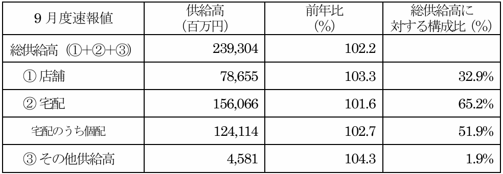 〇9月度の総供給高は、102.2%で前年超えとなりました。