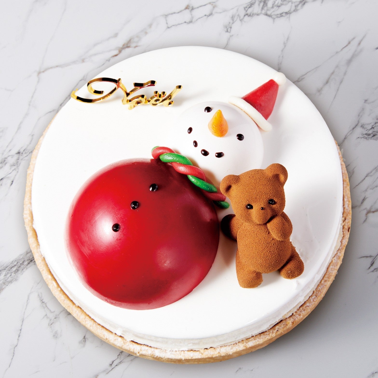 サクサクのタルト生地とクリーミーなチーズが織りなすハーモニーが魅力。一口食べれば、濃厚なチーズの味わいとタルトの食感の絶妙なバランスが楽しめる、高級感あふれる特別なデザートに仕上げました。 デザインは冬の魔法を感じさせる可愛らしい装飾で、クリスマスのテーブルを華やかに彩ります。