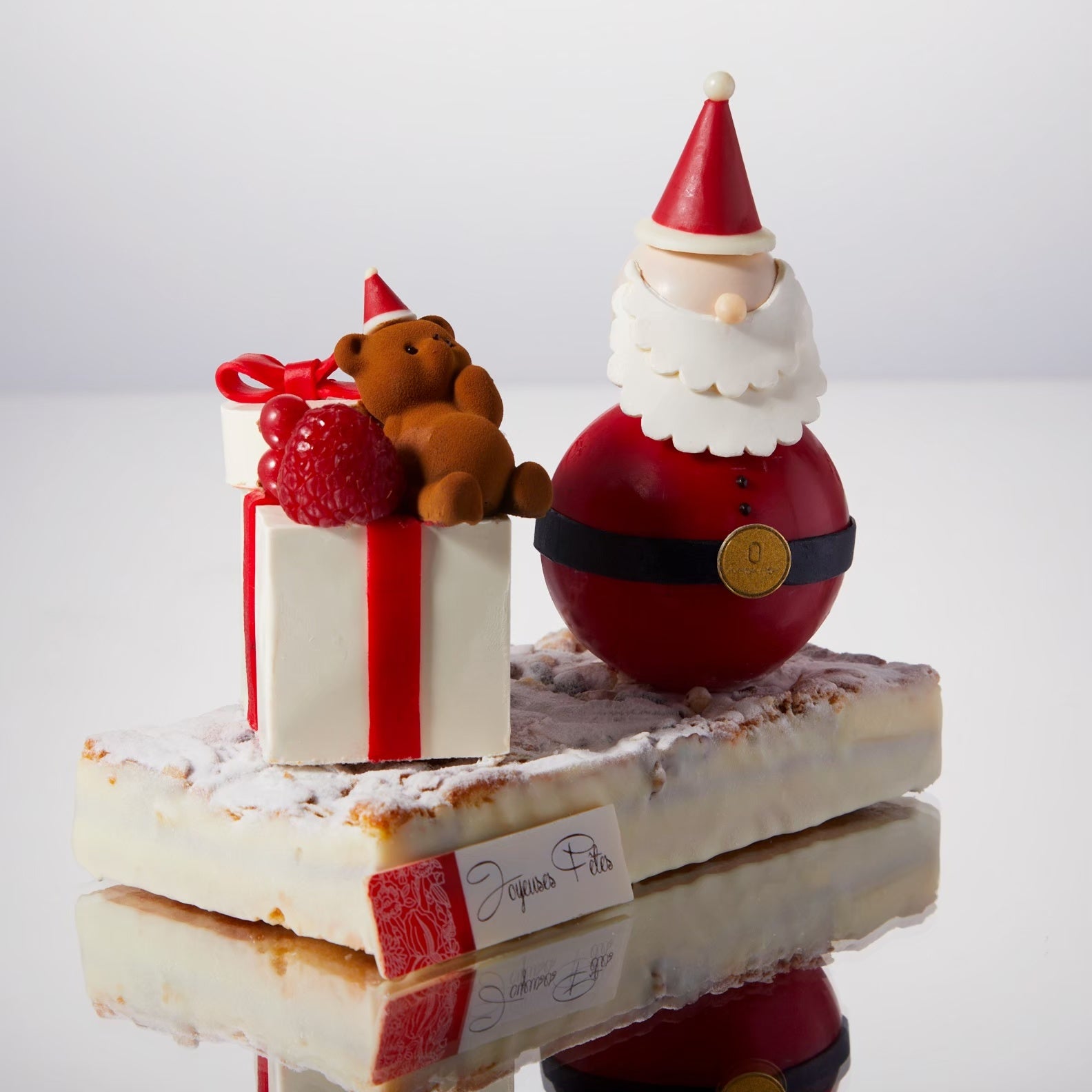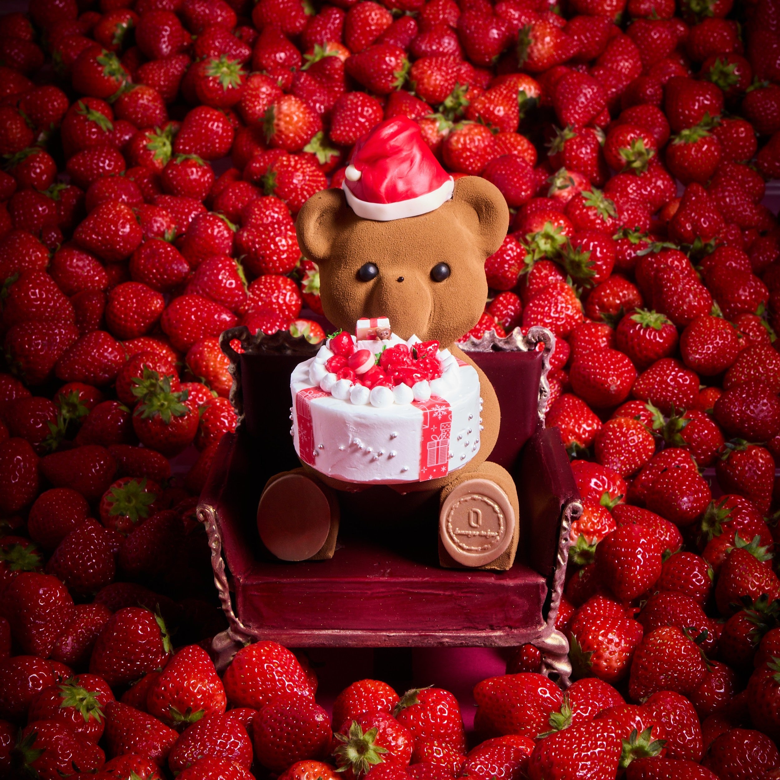 LOUANGE TOKYOで人気のプチヌヌースがサンタ姿で聖夜を可愛らしく演出します。ライチとクミンの風味が効いたムースの層を配し、苺とモエシャンドン・ロゼのコンフィチュールがサンドされた、あまおうのムースケーキです。一口ごとにそれぞれの味わいが溶け合い、贅沢な香りの余韻が続く、大人の贅沢な逸品です。