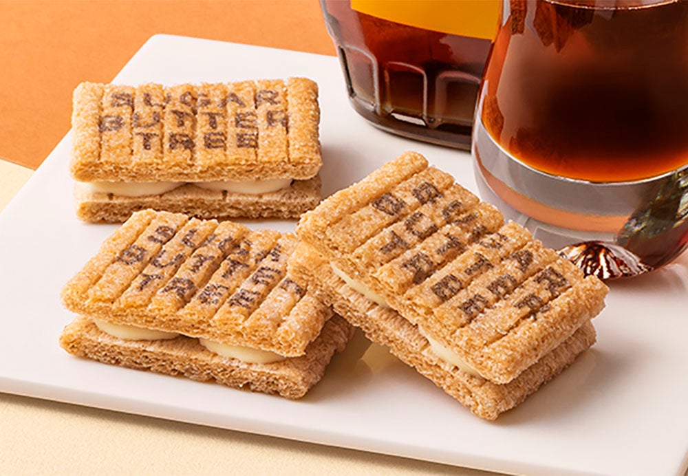 シュガーバターの木は、東京を代表する洋菓子ブランドのひとつ「銀のぶどう」のプロデュースにより、2010年に誕生した〈バターシリアルスイーツ〉の専門店です。独自ブレンドで焼き上げた香ばしいシリアル生地にバターを贅沢にかけあわせる特別製法で、新定番の美味しさを実現しました。一番人気の『シュガーバターサンドの木』をはじめ、季節限定味など数多くのバリエーションと間違いのないおいしさでファンを増やし続けています。