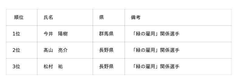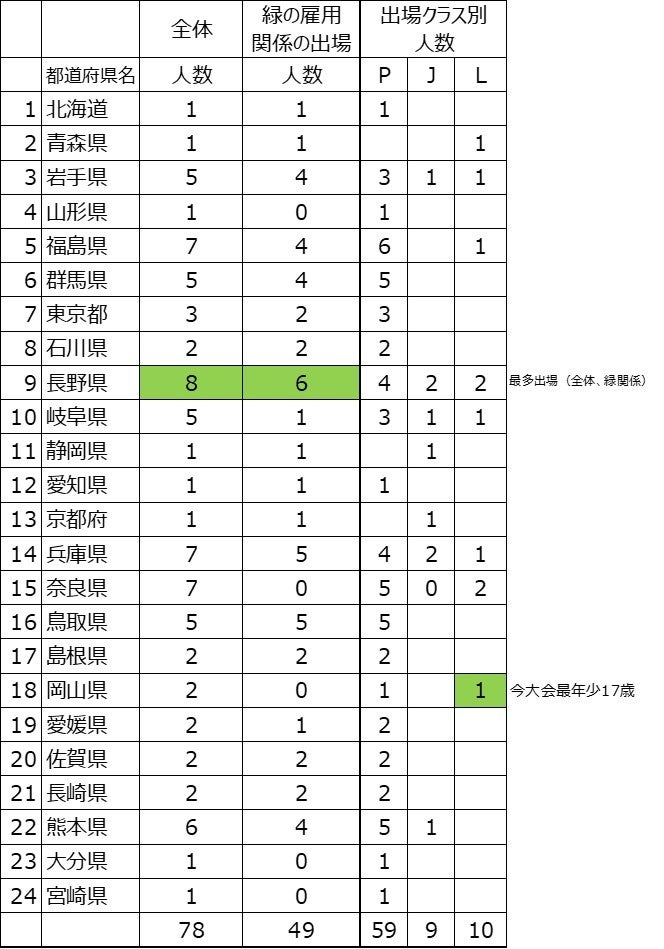 プロフェッショナル1位の今井選手、2位の高山選手は昨年に続き世界大会に連続出場、3位の松村選手は初挑戦。ジュニアの山岡選手とレディースの武藤選手は日本代表選手選考大会を連覇し、世界大会に連続出場します。なお、5名は全員、新規に林業への就業や林業キャリアの向上を目的とする緑の雇用事業関係の選手です。