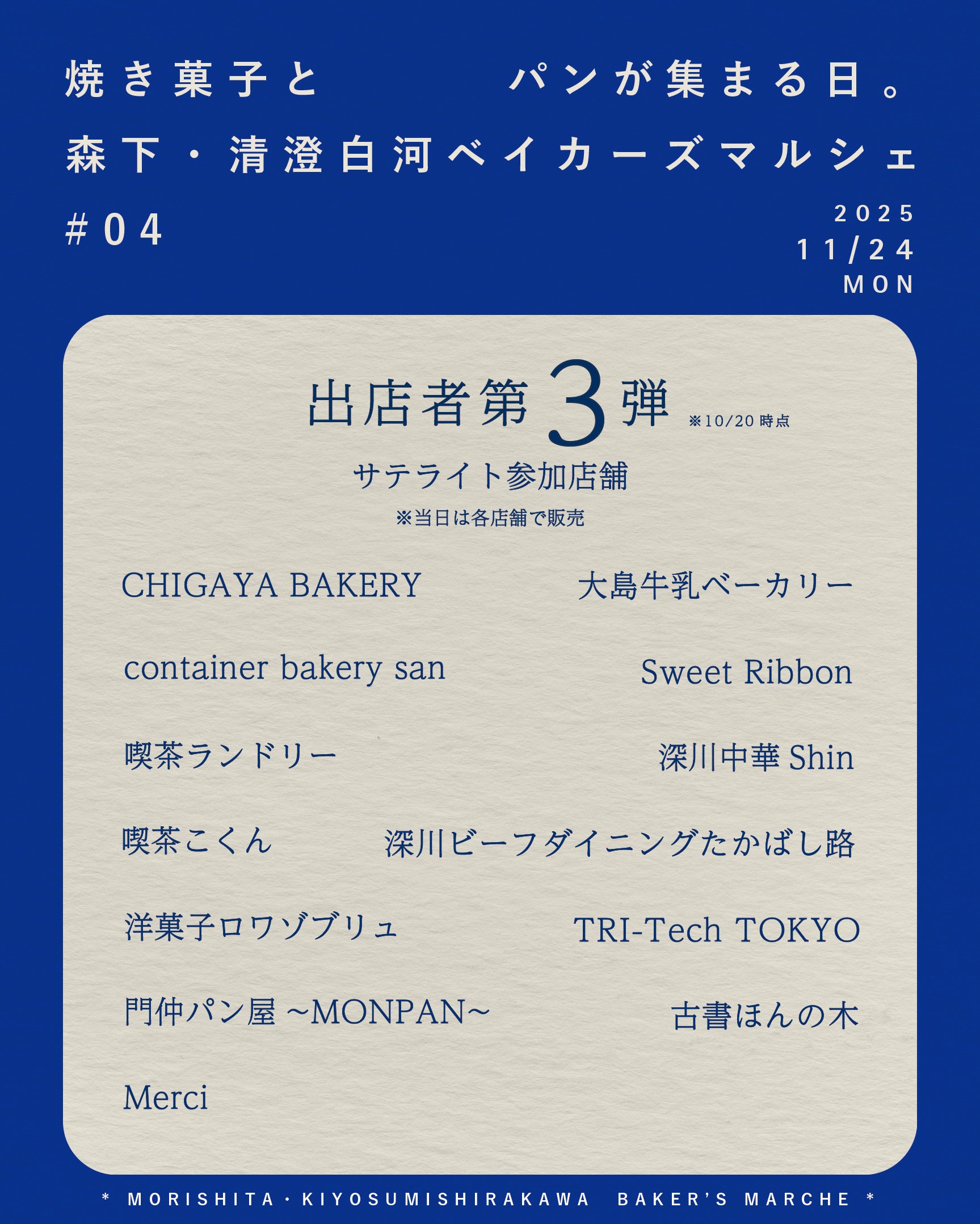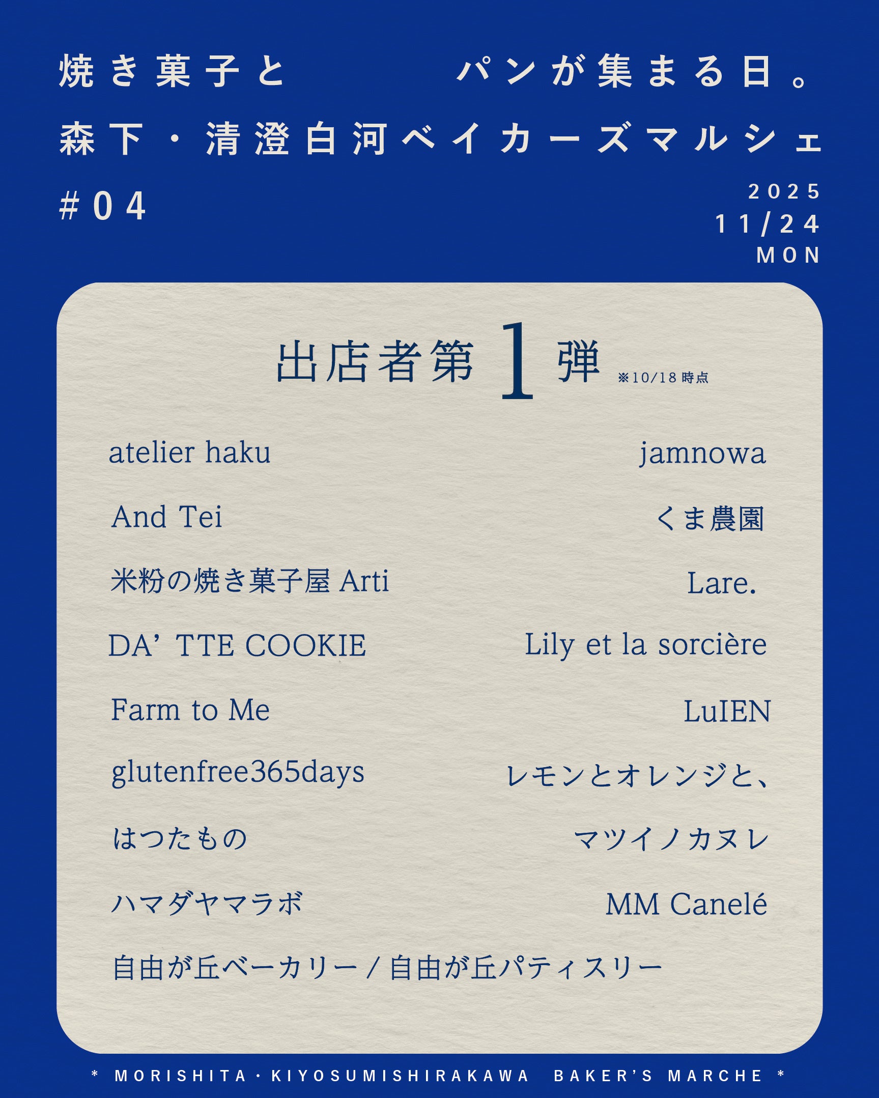 \森下・清澄白河ベイカーズマルシェ|焼き菓子とパンが集まる日。」/