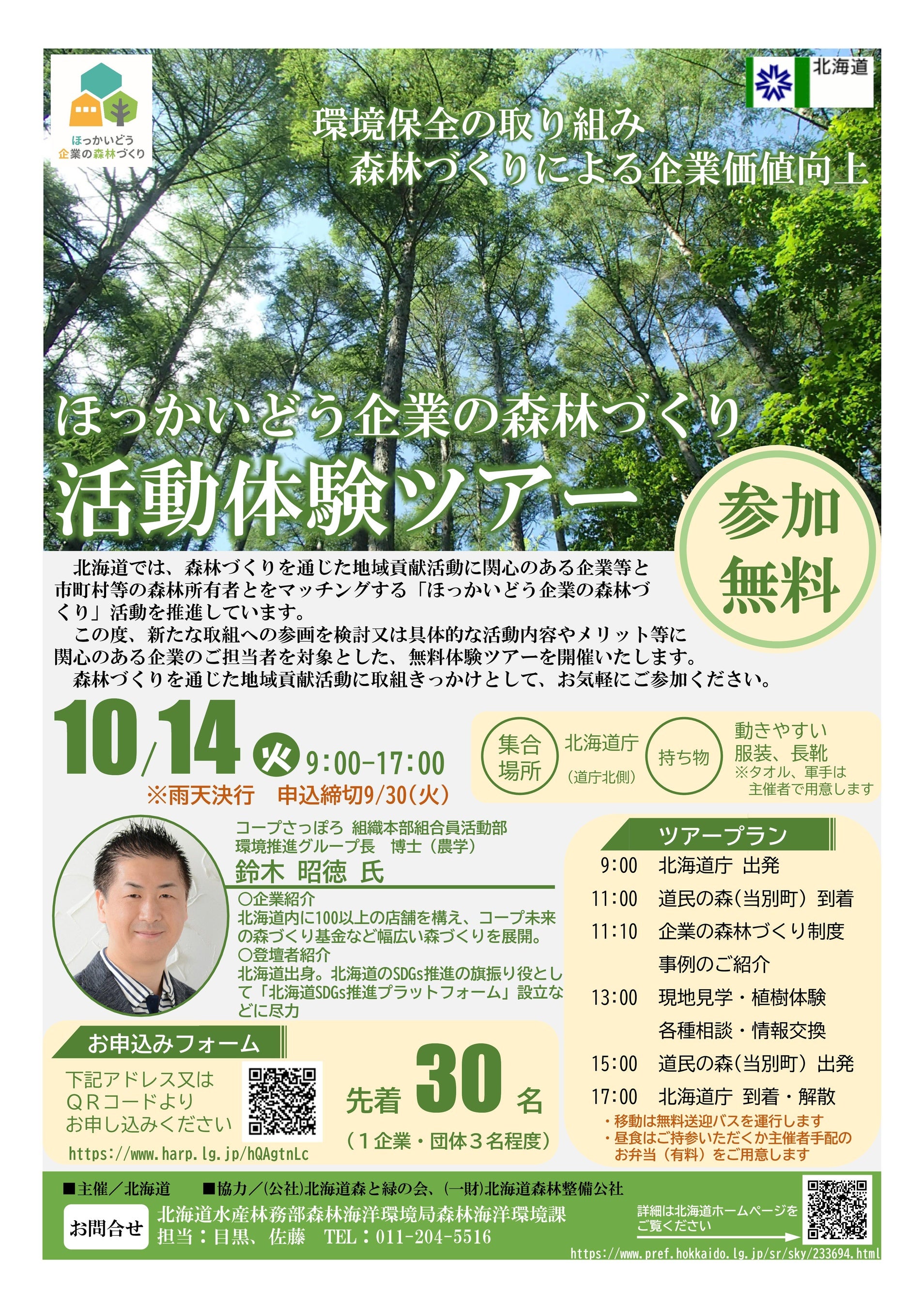 ツアーの開催概要については、北海道森林海洋環境課ホームページをご覧ください。