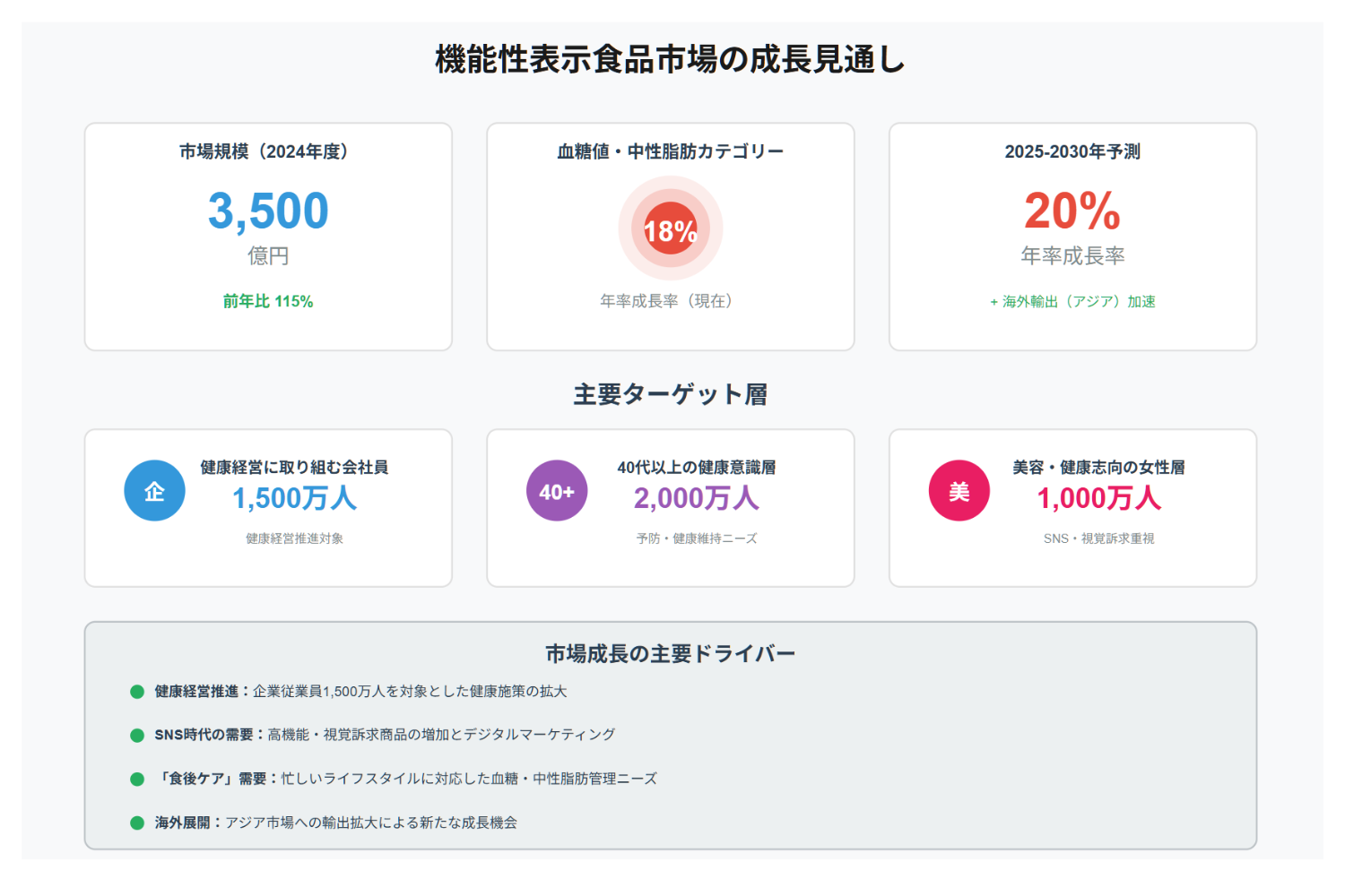 ■市場規模と成長性機能性表示食品市場:約3,500億円(2024年度見込み)