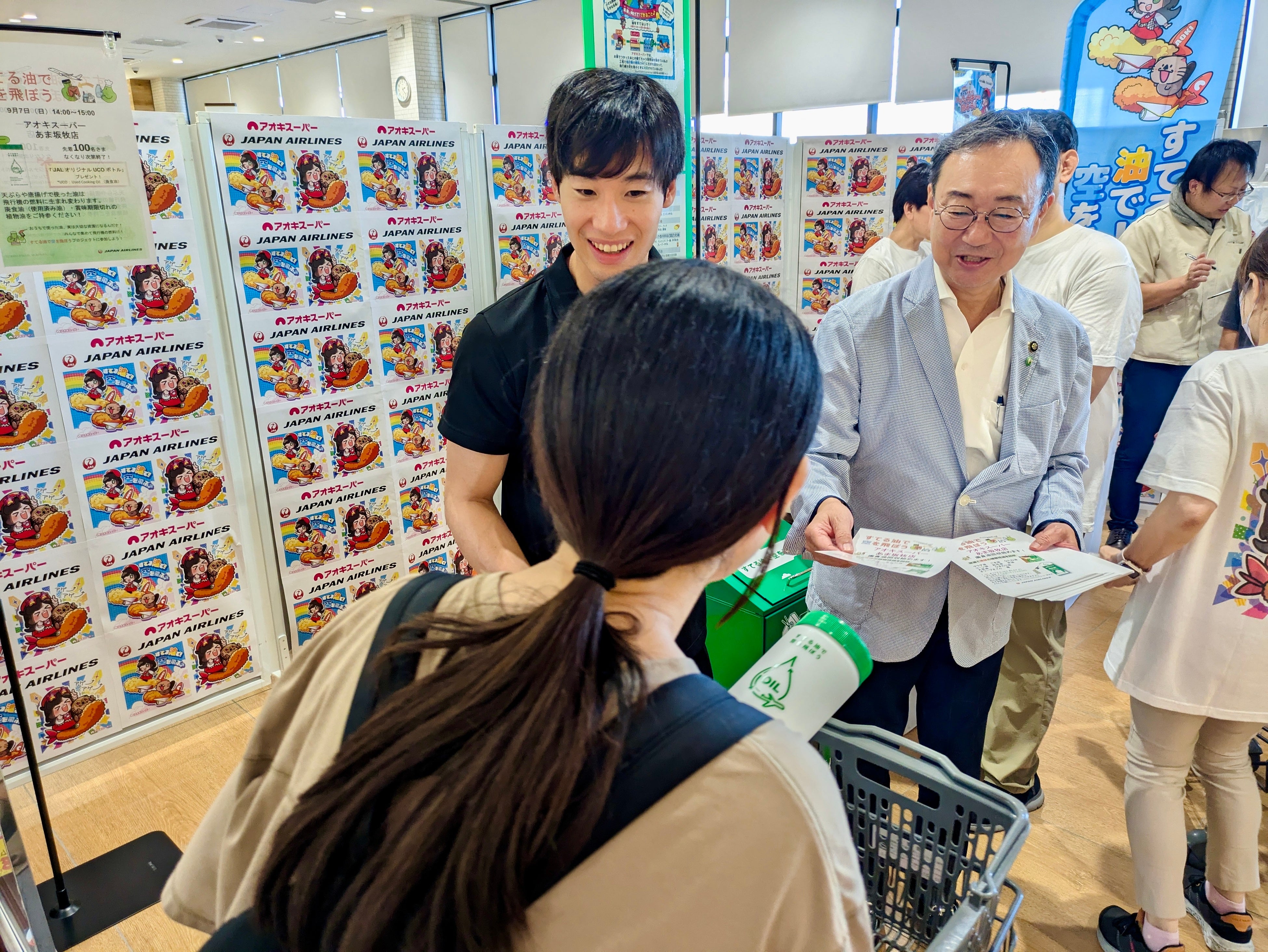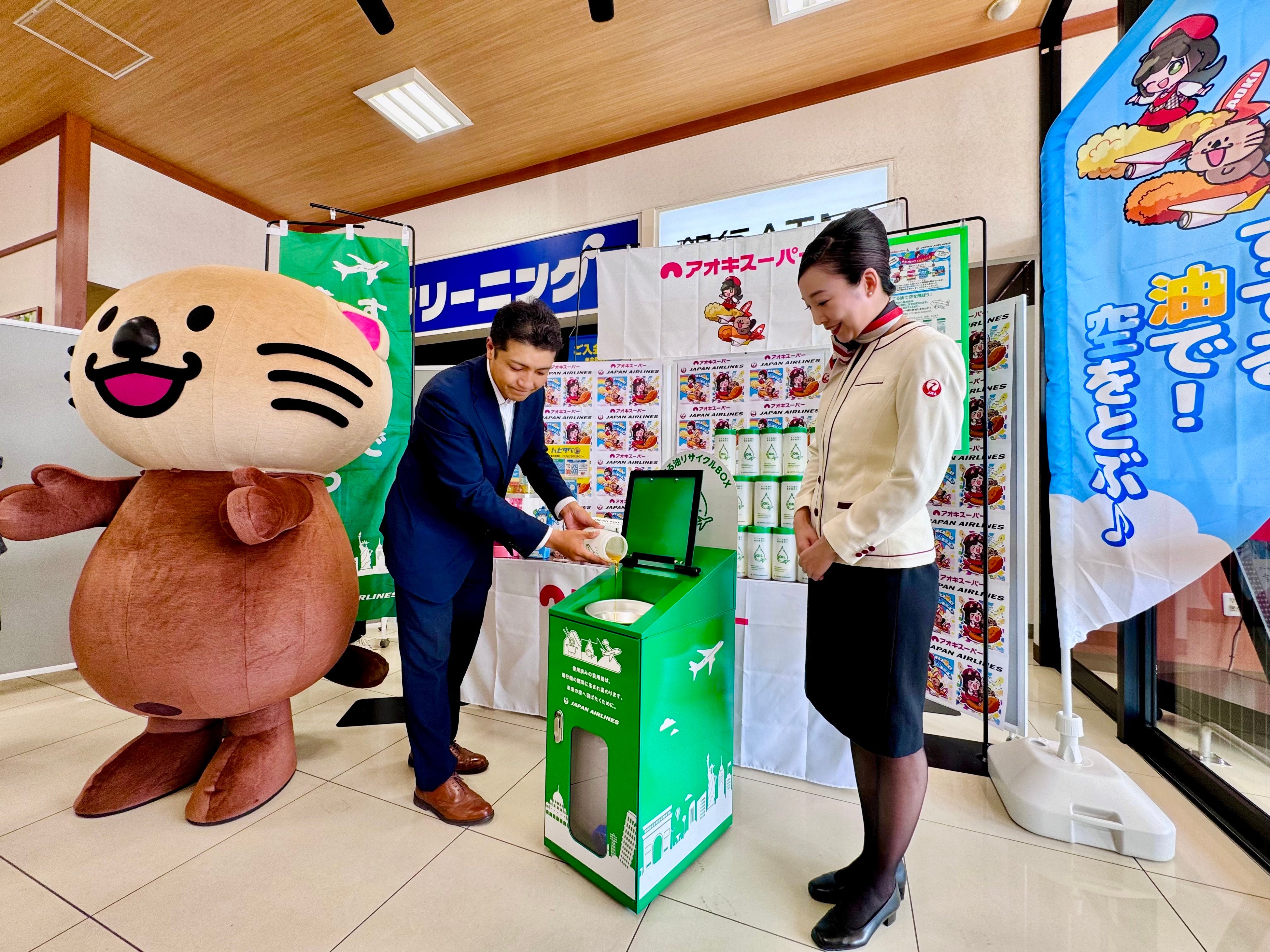 株式会社アオキスーパーは、持続可能な社会の実現に向けた新たな取り組みとして、日本航空株式会社(JAL)と連携し、ご家庭で使用済みとなった食用油を店頭で回収して『SAF(Sustainable Aviation Fuel/持続可能な航空燃料)』にリサイクルする取り組みを開始いたしました。