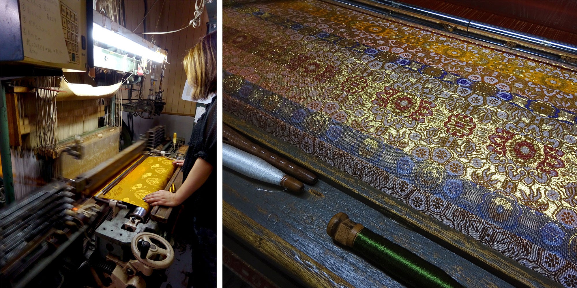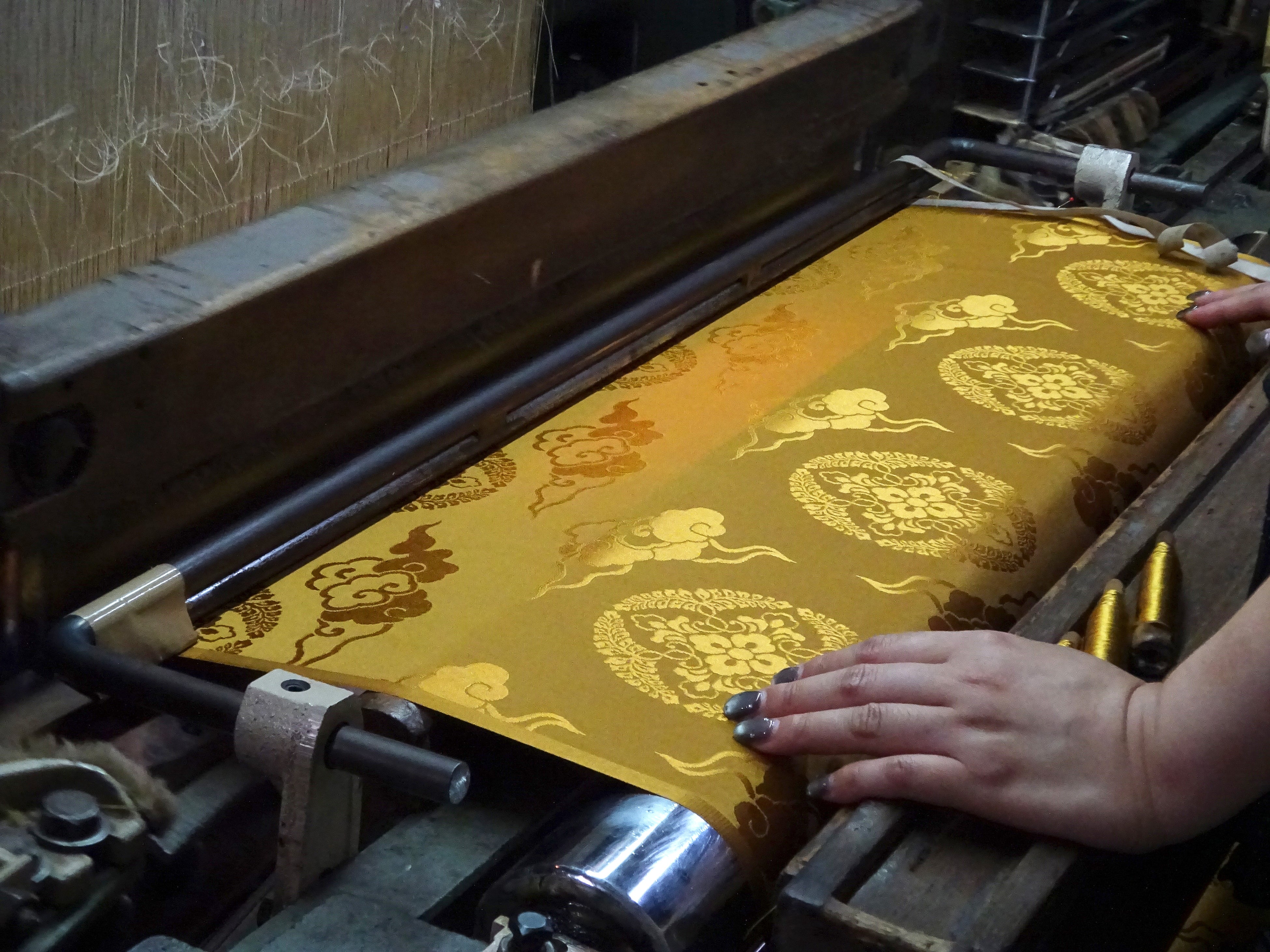 近年は機械織りが主流となっている西陣織。ただ、機械織りと一言に言っても、そこには必ず職人の手が入り、感覚や経験を元にしたわずかな調整が幾度も繰り返され、積み上げられてゆきます。その仕上がりには「携わった職人の性格までもが現れる」のだそう。