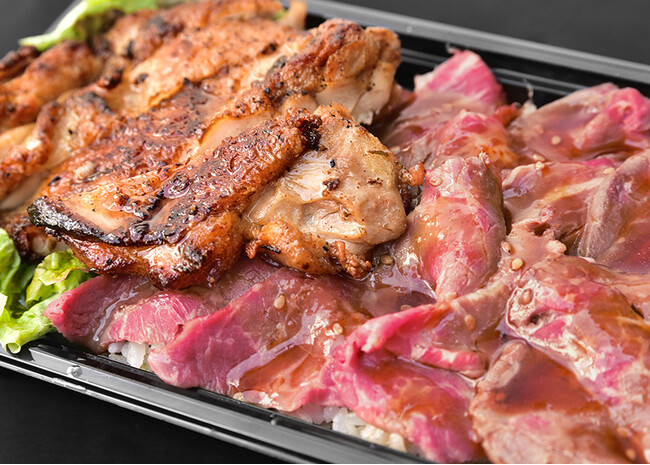 抜群の焼き加減のローストビーフを目の前でカットして提供します。 とろける食感を自家製のソースでお召し上がり下さい。