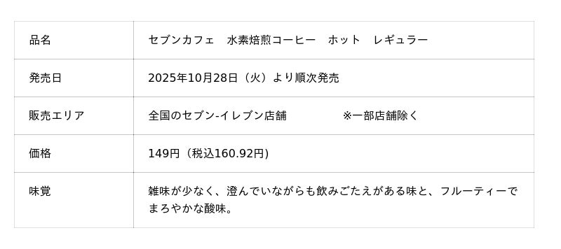 UCC上島珈琲株式会社(本社/兵庫県神戸市、資本金/10億円、社長/芝谷博司、以下UCC)と株式会社セブン‐イレブン・ジャパン(本社:東京都千代田区、代表取締役社長:阿久津知洋、以下セブン‐イレブン・ジャパン)は、新しいおいしさを引き出し、かつ焙煎時にCO2を排出せず、脱炭素にも貢献する“水素焙煎コーヒー”を使用した新しいセブンカフェ「水素焙煎コーヒー」を共同開発し、10月28日(火)より全国のセブン-イレブン店舗にて順次発売します。