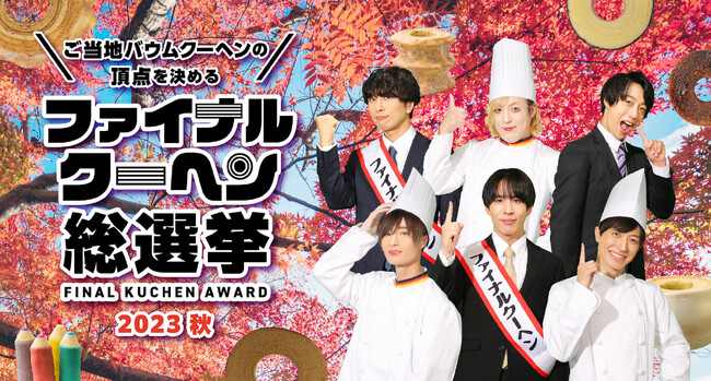 2021年3月より「コロナ禍でも、会場に行かなくても楽しめるイベントを!」という想いから始まった「ファイナルクーヘン総選挙」。昨年9月から11月の「ファイナルクーヘン総選挙2022秋東京頂上決戦」では、58種類のバウムクーヘンがエントリーされ、総得票数27,379票の頂点が決定しました。見事上位に入賞したブランドは大会終了後に商品のPRにもつながっています。そしてこの度、「~全国ご当地バウムクーヘンの頂点を決める~ファイナルクーヘン総選挙2023秋」が開催されます。