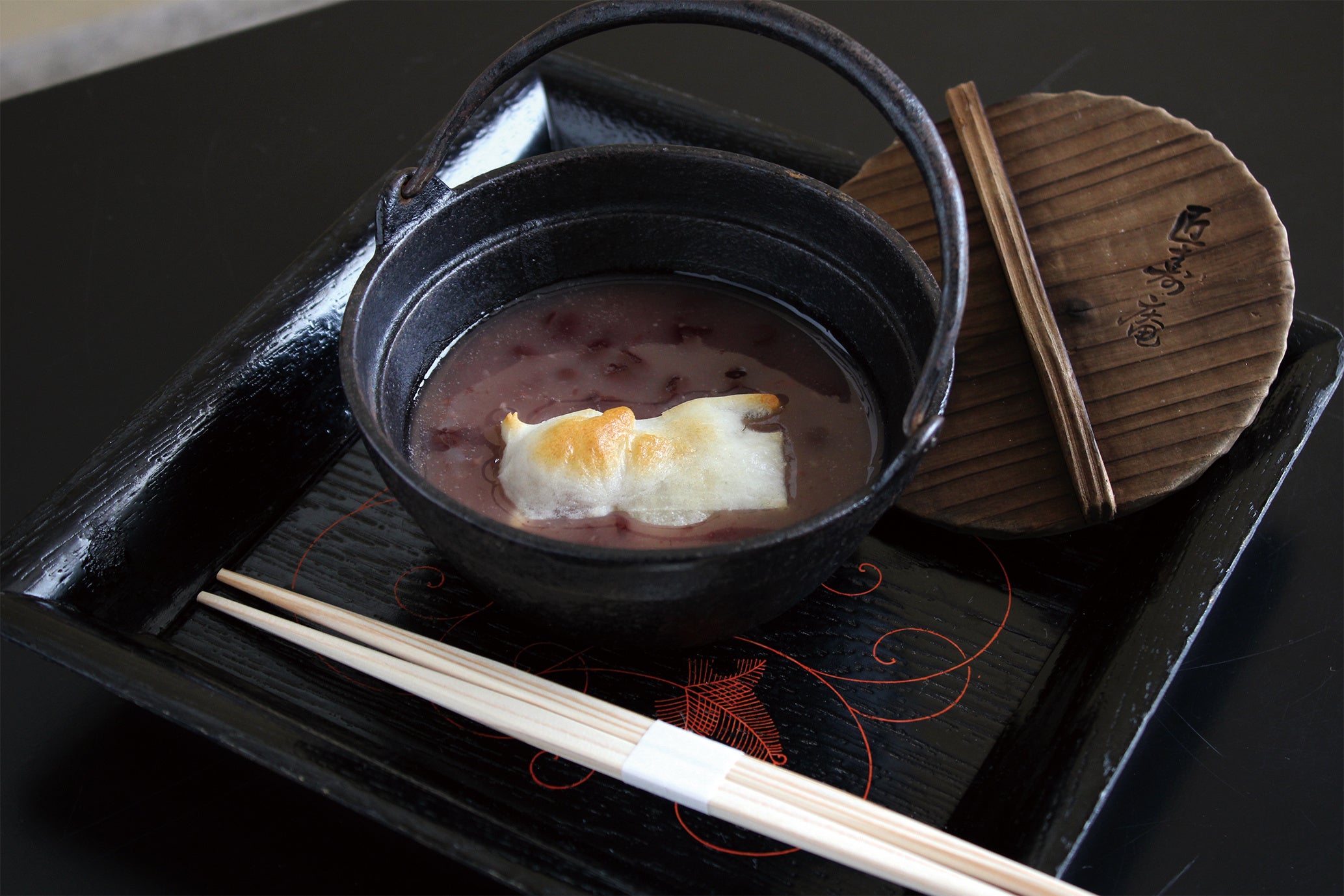 ■あもぜんざいのふるまい(実演)六升釜を使い炊いた「あも」の餡にお餅を添えて。できたてのぜんざいを無料でふるまいます。
