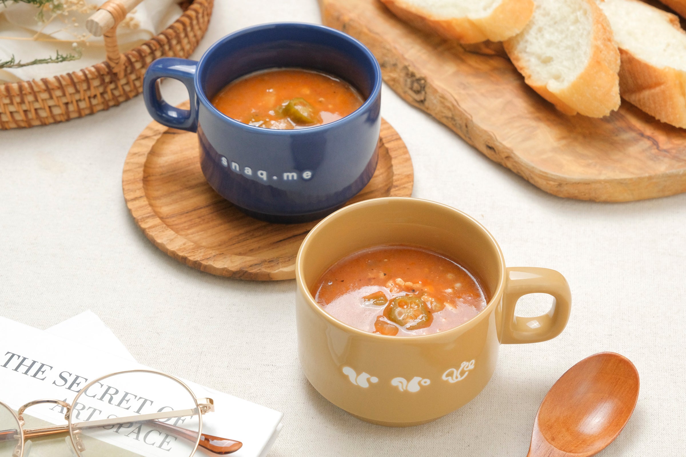 内容:スタッキングマグカップ<ネイビー>×1個、スタッキングマグカップ<マスタード>×1個、ガンボスープ×2袋(1袋150g)