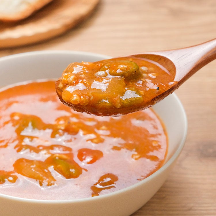 アメリカ南部で親しまれる「ガンボスープ」を、国産の鶏肉とオクラでやさしく煮込み、あたたかく仕上げました。