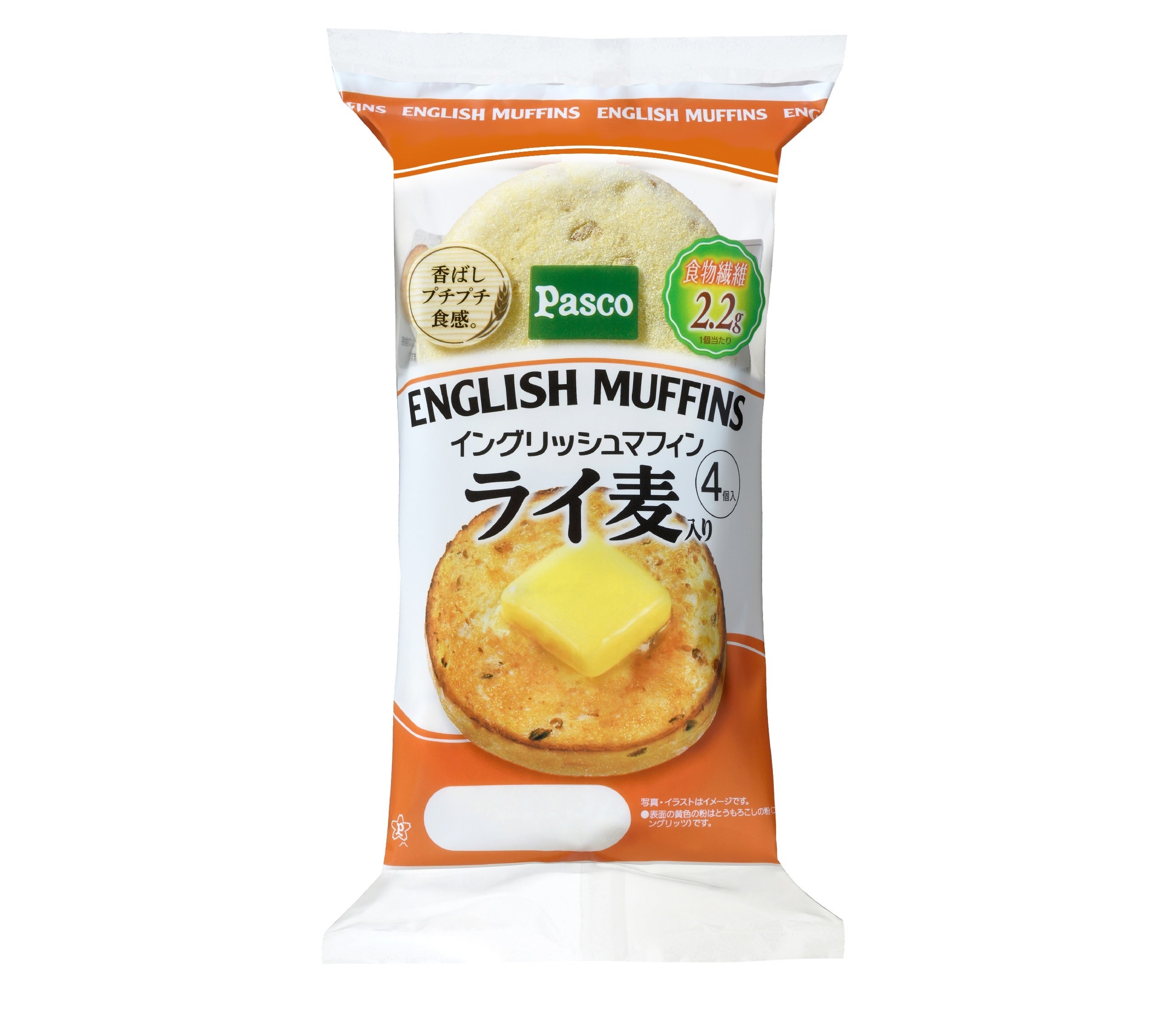 小麦とライ麦の粒をまるごと挽いた胚芽やふすま等を含む全粒粉を使用し、全粒粉の香ばしさや自然な甘みをお楽しみいただけるイングリッシュマフィンです。