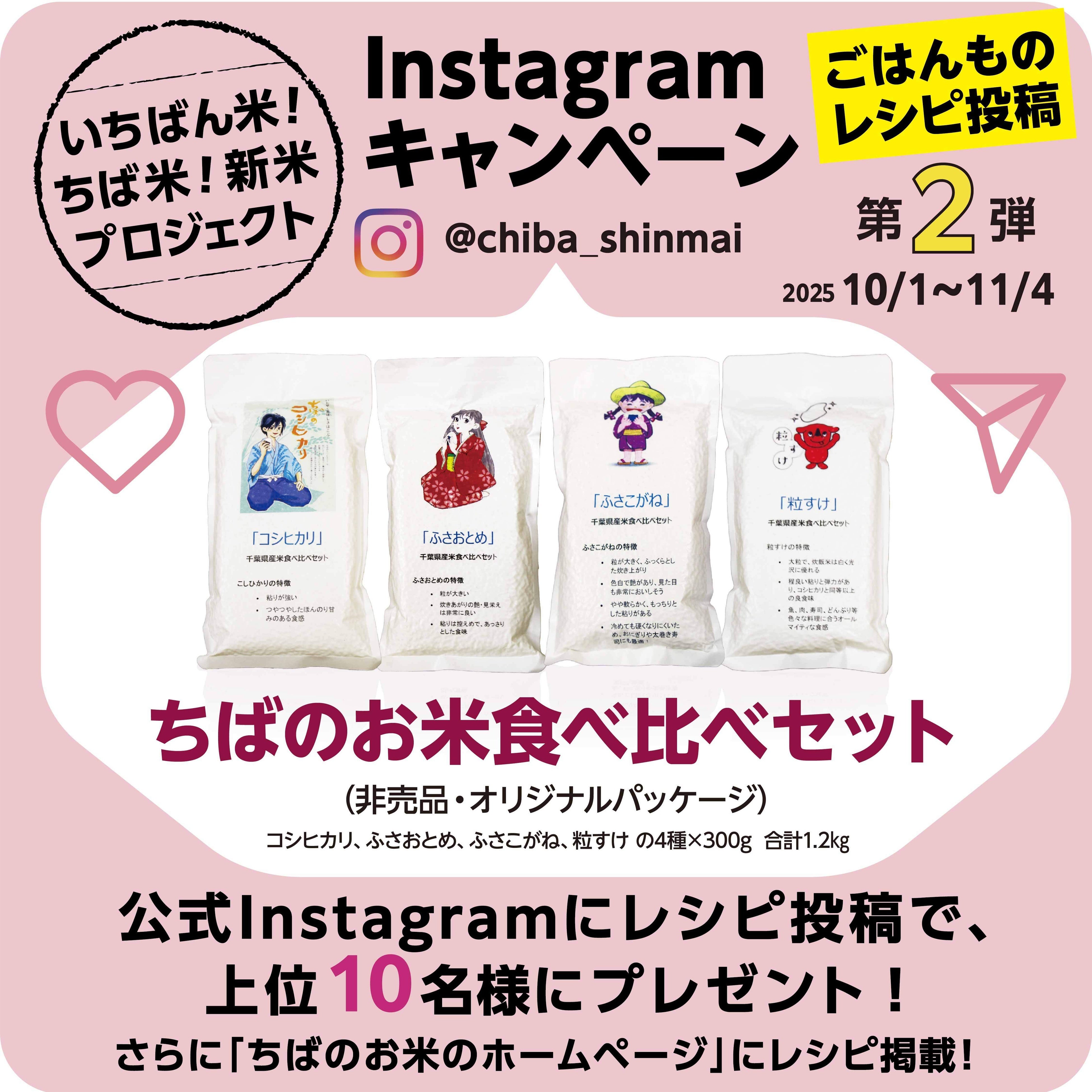 千葉県や米関連団体などで構成し、県民等への千葉県産米の消費拡大を図ること等を目的に活動する「千葉県産米需要拡大推進協議会(代表者:松元 善一)/事務局:千葉県農林水産部生産振興課(千葉県千葉市中央区市場町1-1)/キャンペーン運営事務局:株式会社オニオン新聞社(千葉県千葉市中央区中央3-3-1)」では、おいしい千葉の新米を広くPRするため、2025年11月4日(火)までの応募期間限定で、上位10名の方に「ちばのお米食べ比べセット(非売品)」をプレゼントするInstagramごはんものレシピ投稿キャンペーンを実施中です。