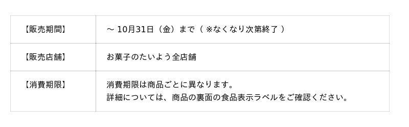 今年のハロウィンは、たいようのギフトでワクワクと笑顔がいっぱいのハロウィンをお楽しみ下さい。