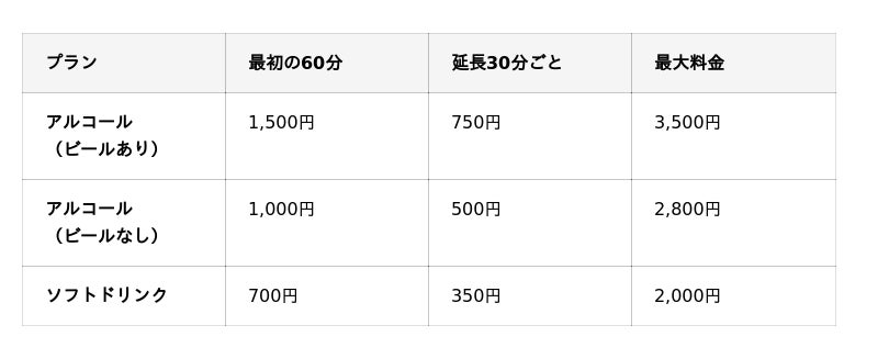 2025年11月1日(土)の営業より、当店の料金プランを以下の通り変更いたします(税込表記です)。