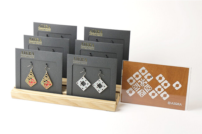 紙の耳飾り「AIGRA(アイグラ)」は、着物の柄を染めるのに使用された喜多方の染型紙「会津型」の魅力を広く発信するために誕生したアクセサリーブランドです。
