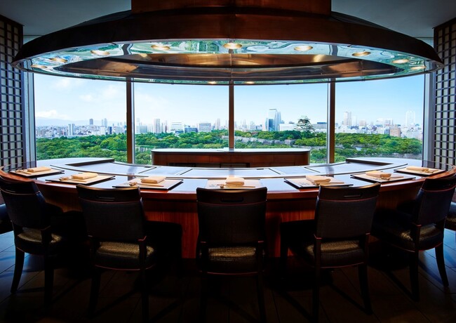 ホテル最上階に位置する鉄板焼 けやきでは、黒毛和牛や新鮮な魚貝類をはじめとした厳選素材を、シェフが目の前で焼き上げるランチコースをご用意。大阪城公園の緑と、昨年復興90周年を迎えた大阪のシンボル「大阪城天守閣」を眺めながら優雅なランチタイムをお過ごしください。