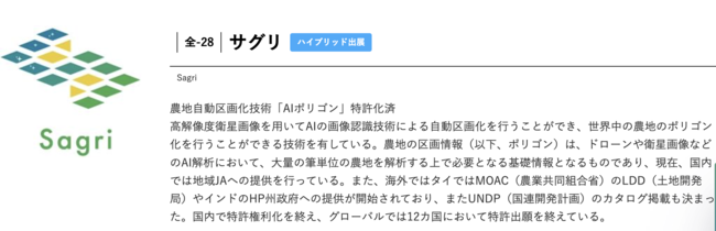 サグリ株式会社(本社:兵庫県丹波市、代表取締役:坪井 俊輔)は、衛星データ(Satellite)×機械学習(AI)×区画技術(GRID)を掛け合わせ、農業や環境における課題解決を目指す兵庫県発ベンチャー企業です。当社は10月19日(水)~21日(金)に東京ビッグサイトで開催される「産業交流展2022」(主催:産業交流展2022 実行委員会)にて出展することをお知らせいたします。