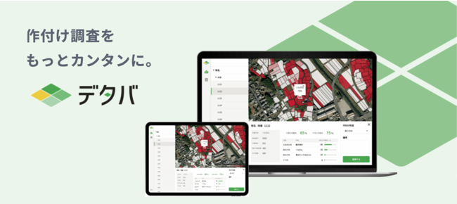 市町村に設置された地域農業再生協議会では、毎年、営農計画書に沿った目視による作付け調査を実施しており、調査業務負担が存在しています。 サグリは、衛星データを用いて作付け調査を効率化するアプリケーション“デタバ”を開発し、調査業務負担の課題解決を実現します。 当アプリは山口県が推進する「シビックテックチャレンジ YAMAGUCHI」の一環で実施した実証実験「衛星・ドローンを活用し、農地の作付状況をスマートに把握したい!」の成果で得られた高精度な作物判定モデルが搭載されており、判定精度は全体で8割、水稲や麦は9割を超えています。