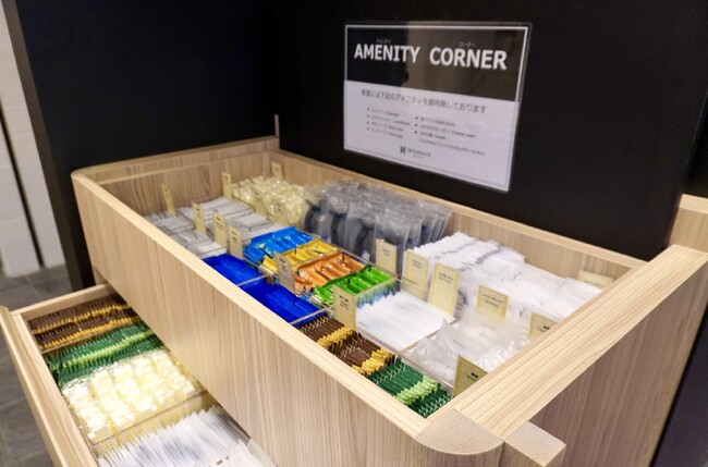 2021年4月に開業した「ホテルインターゲート大阪 梅田」では、開業当初より宿泊時に便利なアメニティを取り揃えたアメニティコーナーを設置しております。この取り組みは「種類が豊富で選ぶのが楽しい」「必要なアイテムを必要な分だけ使用できるのが嬉しい」など幅広いお客様からご好評をいただいております。