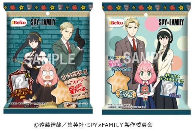 2022年4月より第1クール、10月より第2クールのTVアニメの放送がスタートし、話題沸騰中の『SPY×FAMILY』とコラボした「スパイファミリー小さな星たべよ2(ピーナッツバター風味)」は2種類のパッケージデザインにて展開いたします。仮初めの家族となったロイド・フォージャー、アーニャ・フォージャー、ヨル・フォージャーがデザインされ、物語の世界観溢れるパッケージに仕上げました。中身は作中で登場する優等生の褒章「ステラ」の形に見立て「星たべよ」を採用し、アーニャの好物である「ピーナッツ」から着想を得たピーナッツバター風味の一口サイズのおせんべいです。子どもから大人まで、幅広い世代の皆様にお楽しみいただけます。