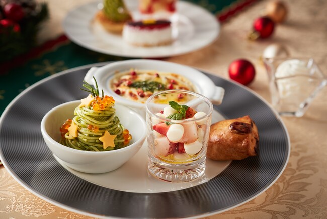 ・「バジル風味のパスタ クリスマスツリー仕立て フレンチキャビア添え」