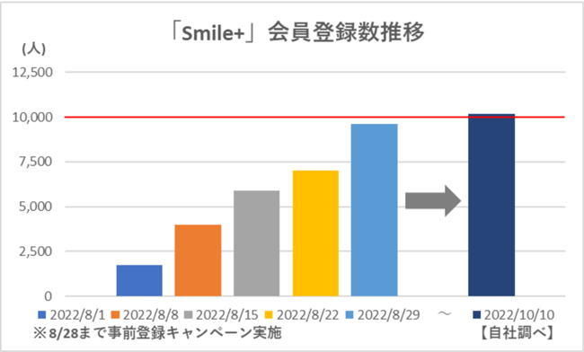 2022年8月22日より開始したWeb会員サービス「Smile+(スマイルプラス)」(以下、Smile+)は、わずか2か月で会員数が10,000人を突破しました。 8月28日まで実施した事前登録キャンペーンにより目標の7,000人を大きく上回る登録があり、その後も新規会員数が増加したことで、10月17日週号ではサービス利用者の6割以上が会員となっています。お客様全員の登録を目指し、順次サービス・キャンペーンを拡充します。