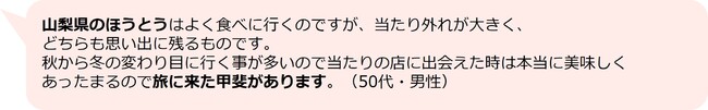 そして、旅先を決める際には「食」が重要な要素となっており、約7割の方が「その土地の名物など食事を目的に旅先を決めることがある」と回答しました。