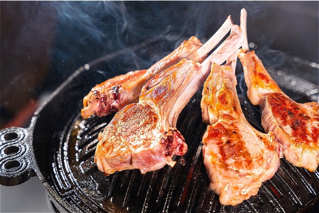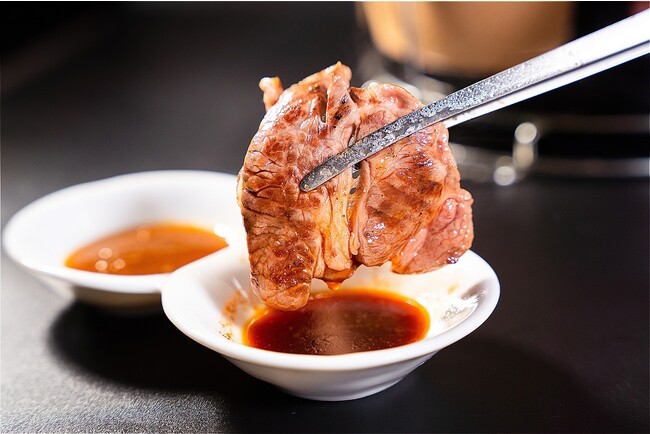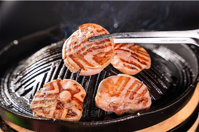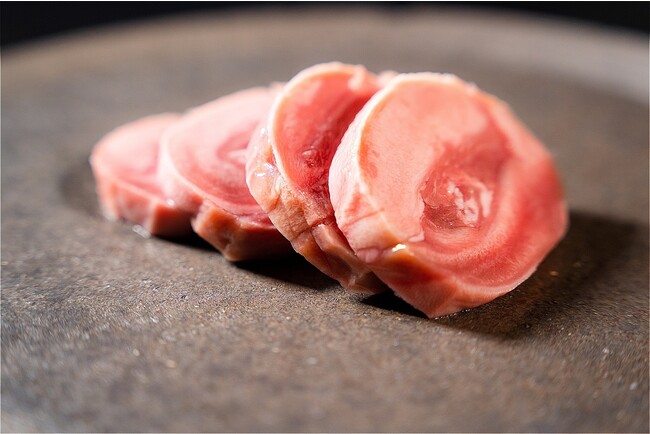 「極厚ラムタン」は、約1cmほどに分厚くカットしてご提供致します。また、一口では収まらないほどの大判サイズも魅力の一つ。口に運ぶと溢れ出す肉の旨味が広がり、噛む瞬間に弾力のある噛み応えを堪能いただけます。