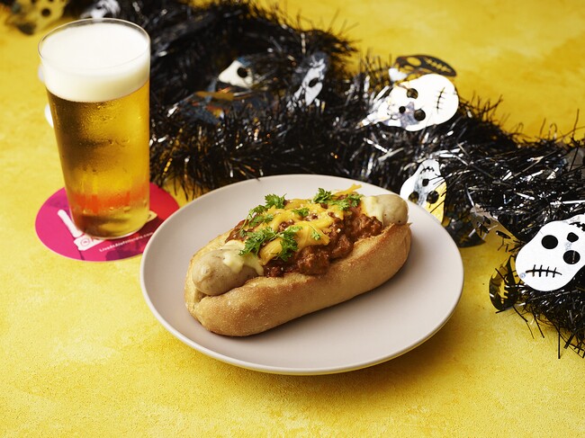 ジューシーで食べ応え抜群のソーセージに、ピリ辛のチリを トッピングしたチリドッグ。ビールとの相性抜群です。