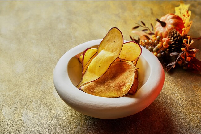 さつまいもを薄くスライスし、カラッと揚げたチップス。 お好きなお飲み物とご一緒にどうぞ!