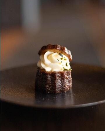 卵黄多めの生地を半日以上寝かせ、食感とコクを引き出したUNI COFFEE ROASTERYで人気のカヌレに濃厚なマスカルポーネのクリームを加えています。カヌレのラムの香りと相まってプレミアムな味わいに仕上げています。