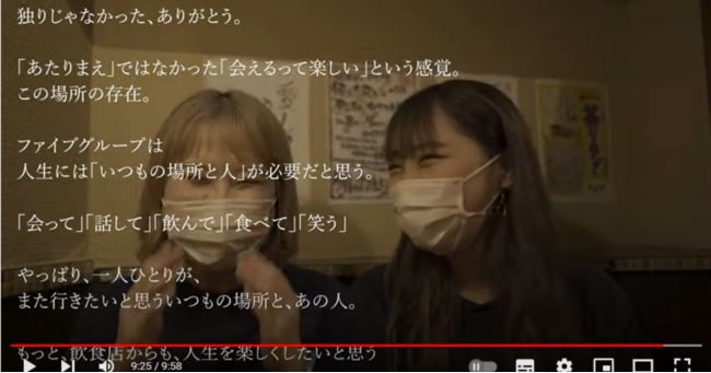 ファイブグループは飲食店を「飲み食いする場」だけではなく「生きていくのに欠かせない”食”を通じて人と人がつながる場」と捉えています。
